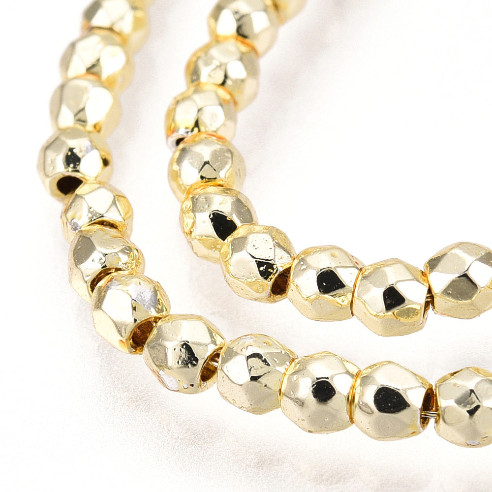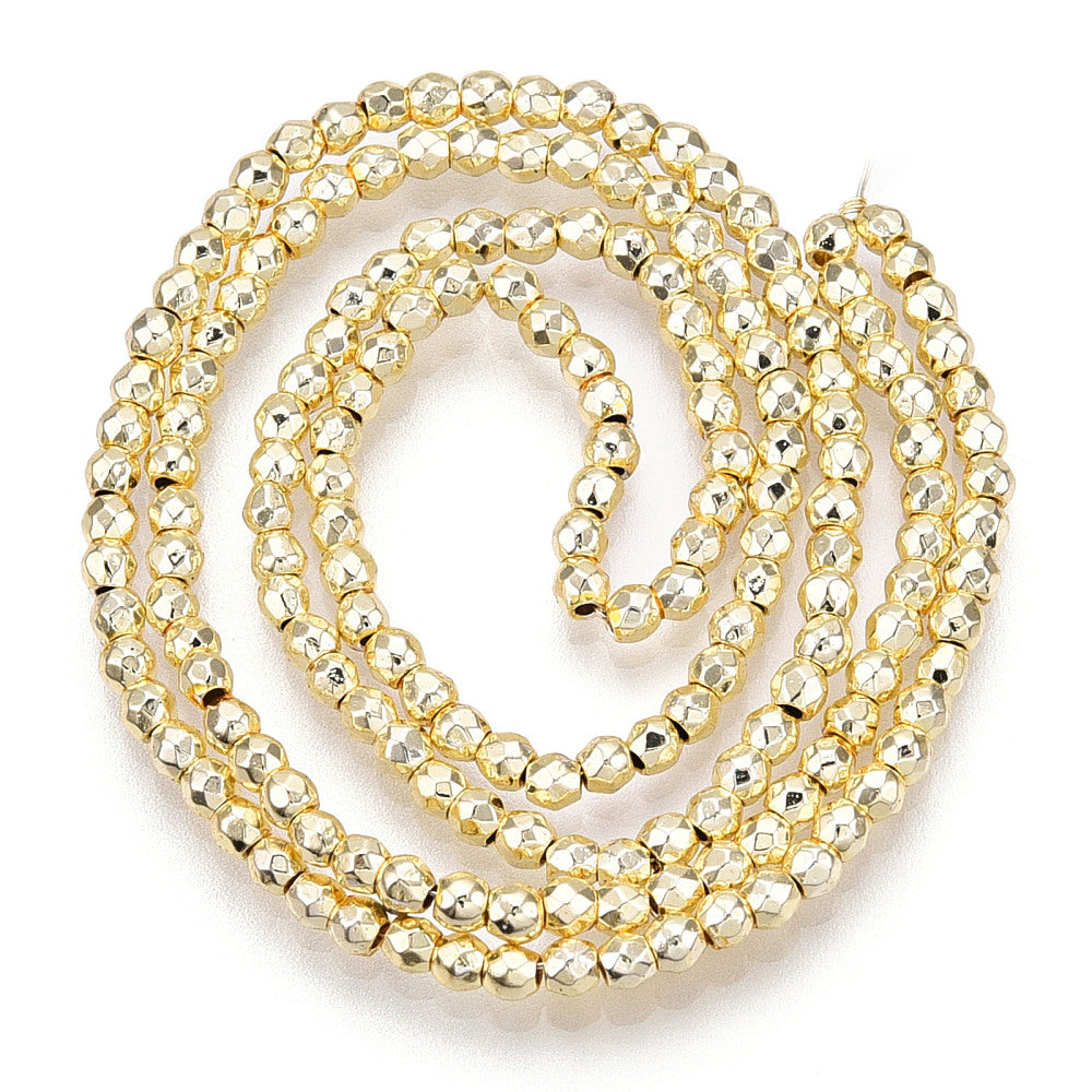 Electroplate Non-magnetic Hematite Bead Strands, Round, Faceted, Golden Plated, 2mm, Hole: 1mm, about 200pcs/strand, 15.7 inch strand.