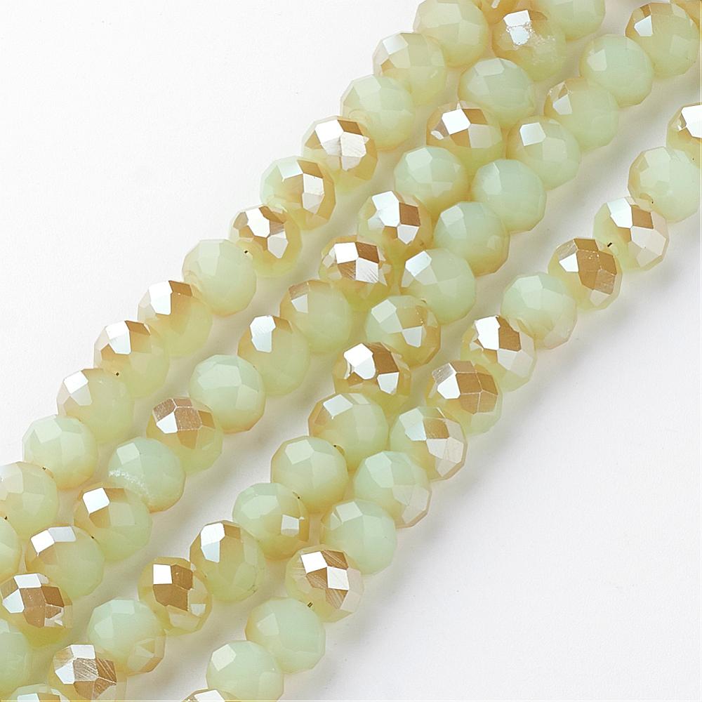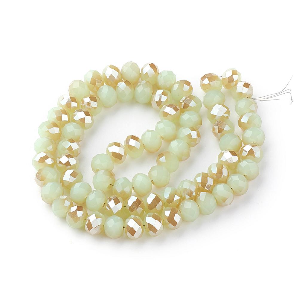 Faceted Glass Rondelle (6 x 4mm) *Half Plated Soft Oceans Green (approx 100 beads per 15.5" Strand)