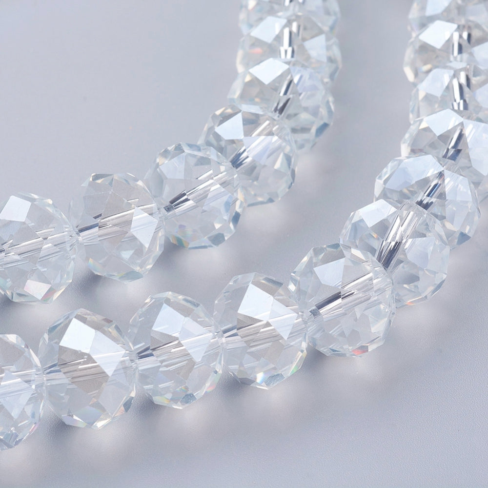 Faceted Rondelle (Glass). 16x12mm. Pearl Luster Plated over Clear. Approx 24 Beads.