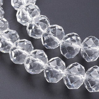 Glass Beads, Faceted, Rondelle, (Clear), 10 x 8mm, Hole: 1mm. (Approx 65 Beads/ Strand)