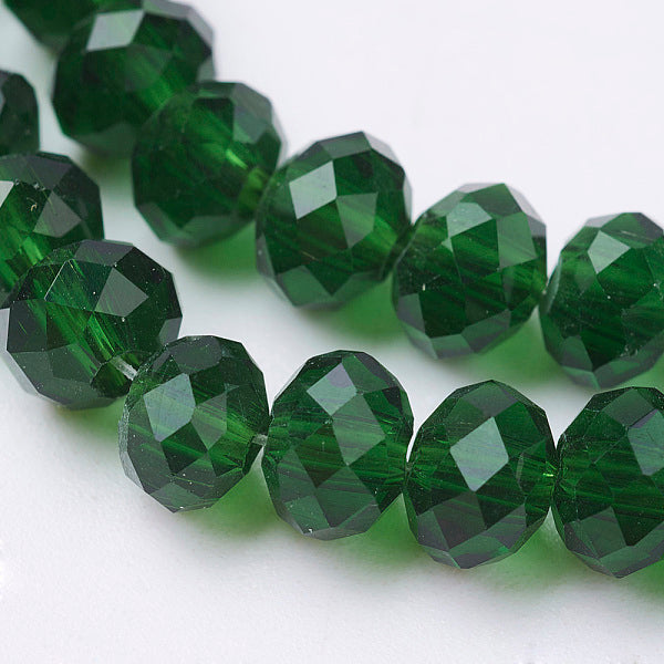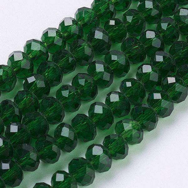 Glass Beads, Faceted, Rondelle, (Dark Green), 6x4mm, Hole: 1mm;