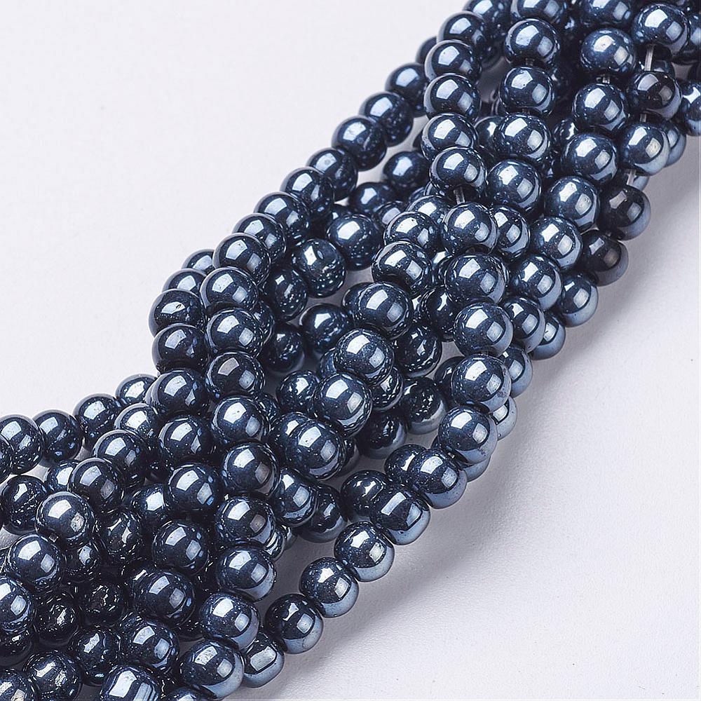 Glass (Electroplated) Round 4 mm *Pearl Luster Plated on Black (approx 42 Beads)