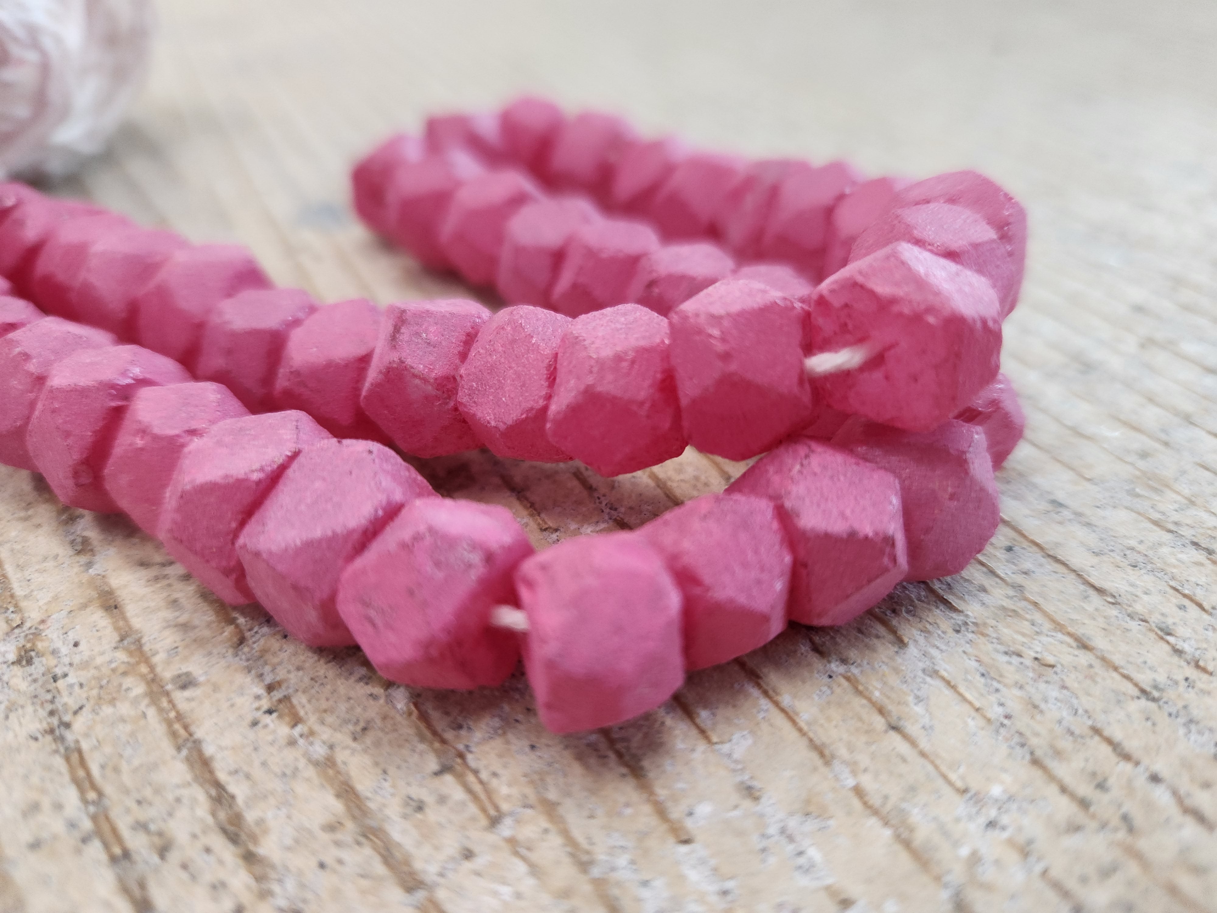 Indonesian Recycled Glass 'Bolt' Beads. *Pink (Faceted). APPRPX 10 X 8mm. *45 beads