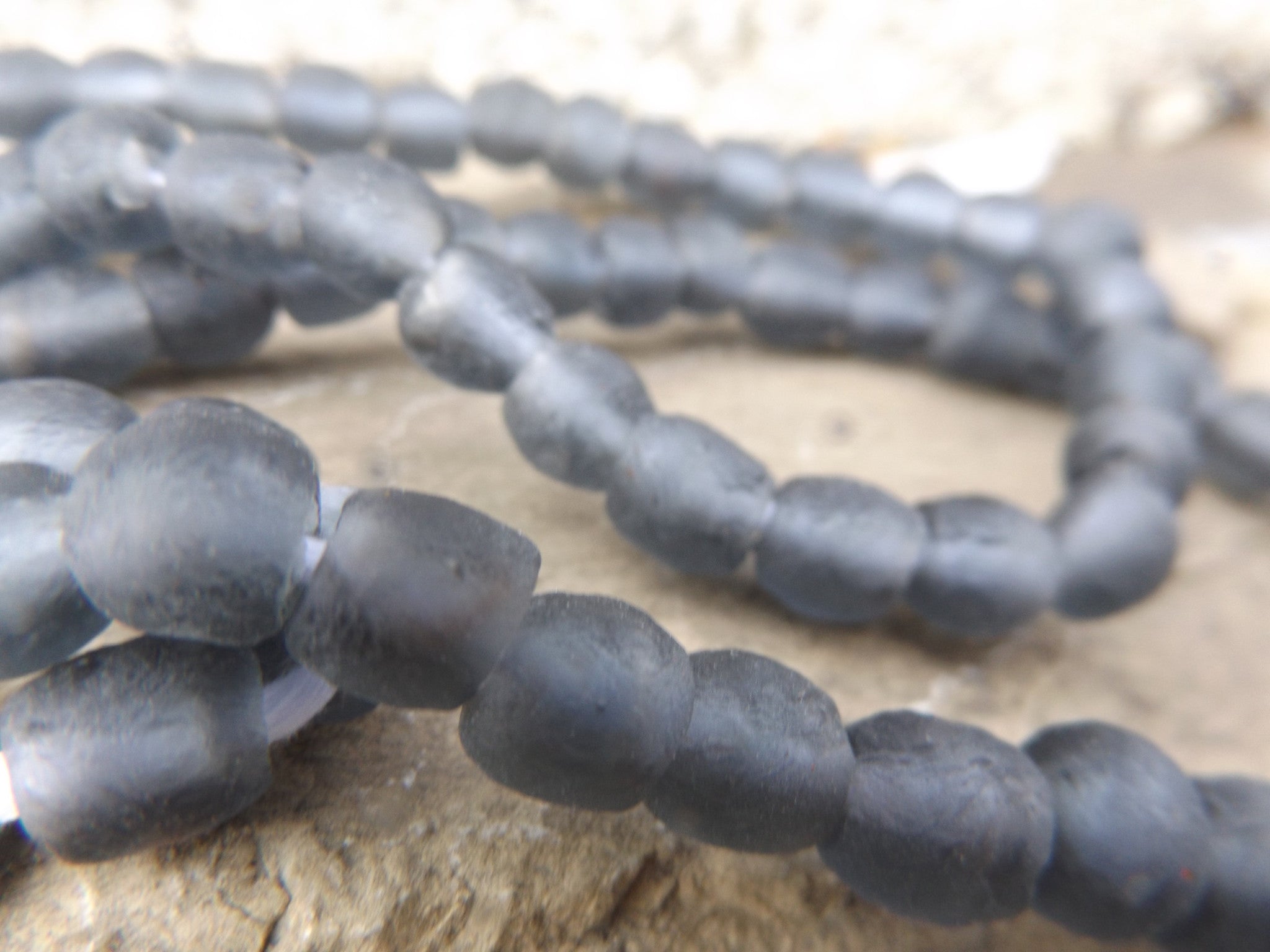 African Recycled Glass Round Beads (Bodum) (Dark Grey) See Drop Down for Size Options