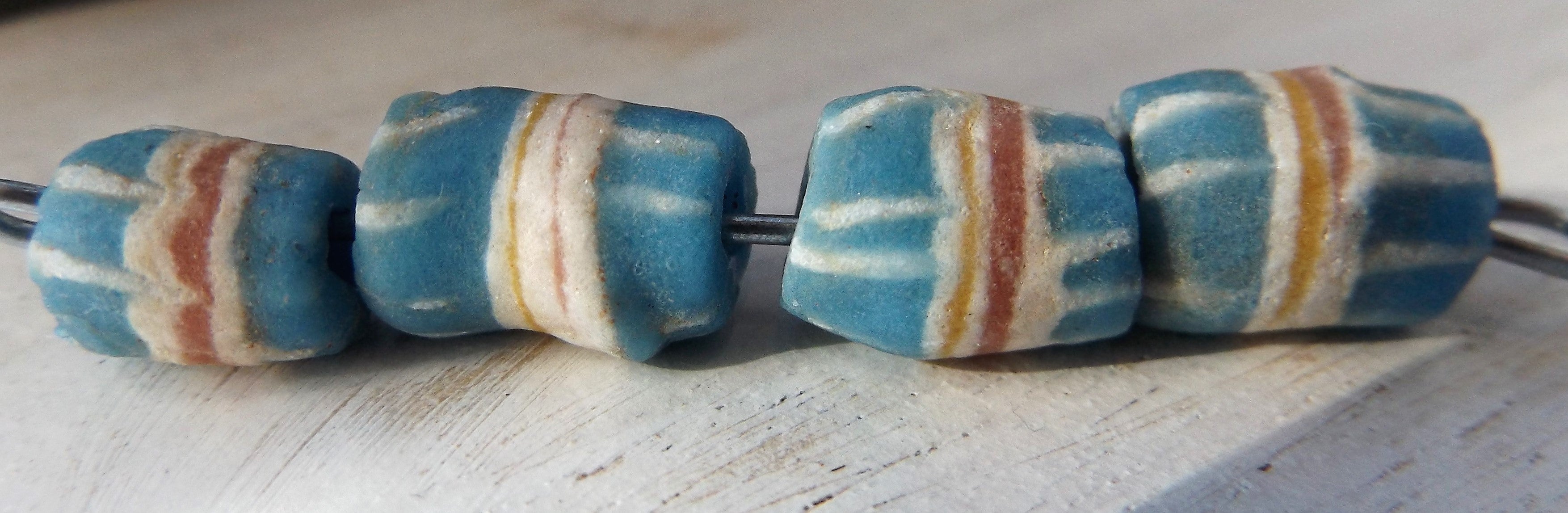 Sand Cast African Recycled Glass (Blue with White and Maroon) *4 Beads