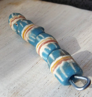 Sand Cast African Recycled Glass (Cream Barrel with Blue and Green Lines) *3 Beads