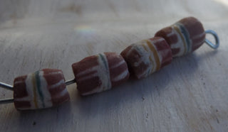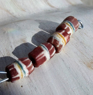 Sand Cast African Recycled Glass (Maroon with Green and Yellow Lines) *4 Beads