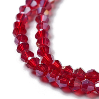 (3MM). Red with an AB Coating. Bicone Glass Bead 17" Strands, Grade AA, 3x3mm, Hole: 1mm