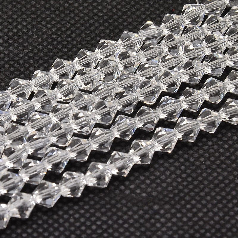 (3MM). Bicone Glass Bead 17" Strands, Grade AA, Clear, 3x3mm, Hole: 1mm