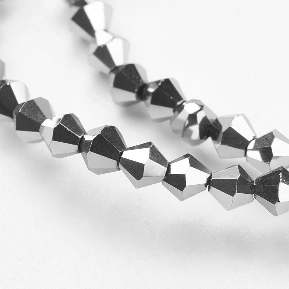 (3MM). Full Electroplate Bicone Glass Bead (Silver Color) 17" Strands, Grade AA, 3x3mm, Hole: 1mm