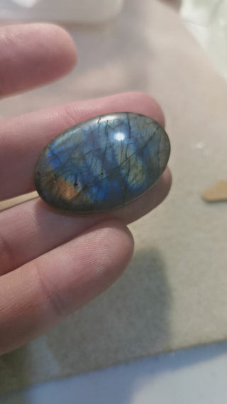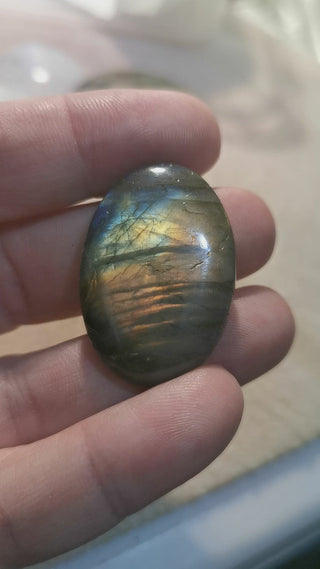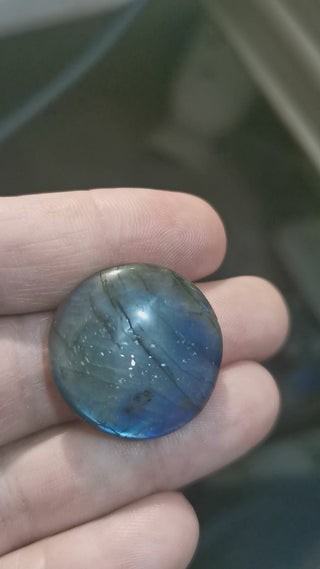 Labradorite Cabochon. Carved Face Moon, 29.5~30.5x21x9.5mm Sold Individually.