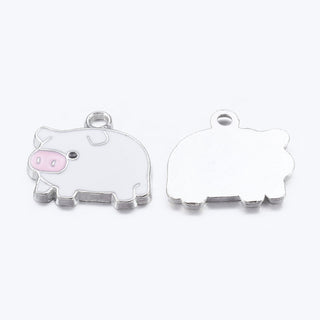 Eco-Friendly Alloy Enamel Charm. Pig , 19.4x18.4mm, Hole: 2mm. *Sold Individually. See Color Options
