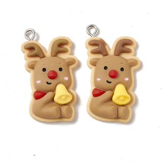 Christmas Reindeer (Red) Enameled. 21x19x1.5mm, Hole: 1.4mm. (Sold Individually)