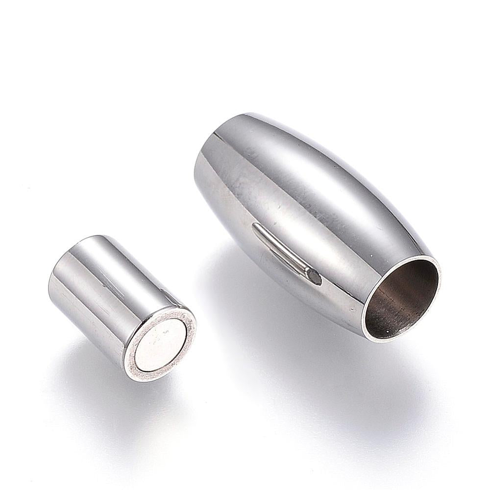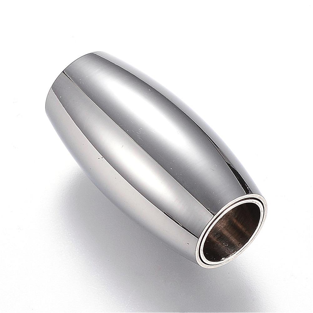 Column 304 Stainless Steel Magnetic Clasps with Glue-in Ends, Shiny Stainless, Stainless Steel Color, 21x10.5 mm, Hole: 6mm*Sold Individually.
