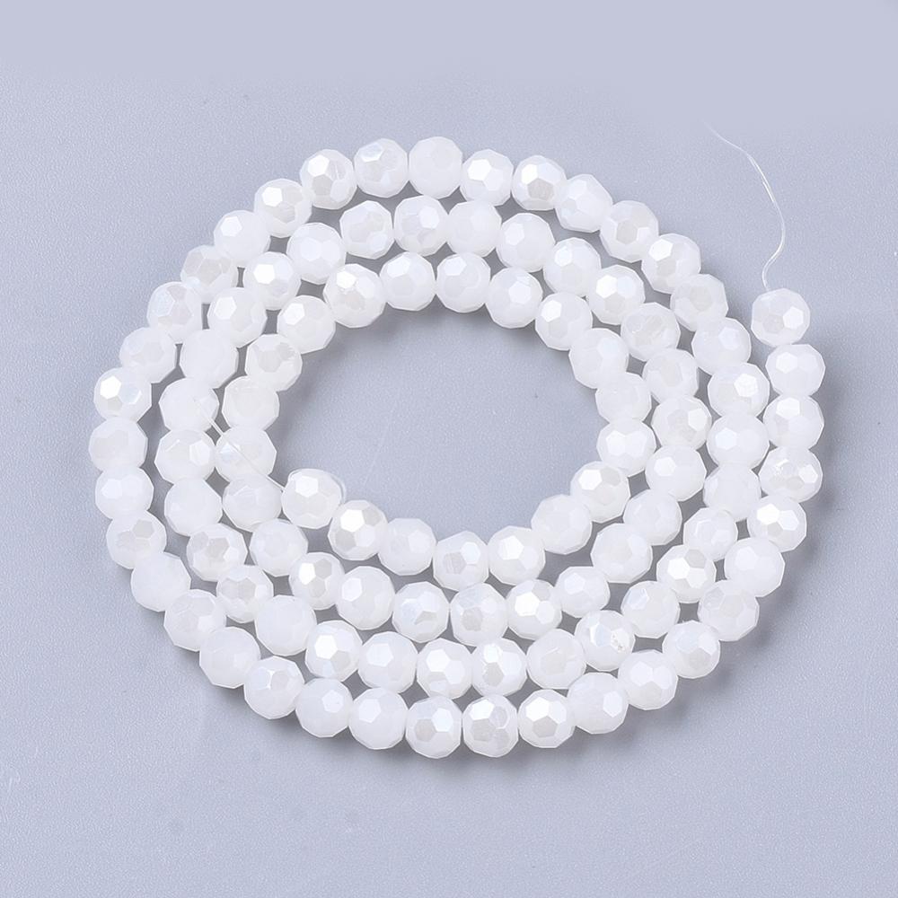 4mm Faceted Round Crystals *Pearl Luster Plated White (approx 100 beads per 15" Strand)