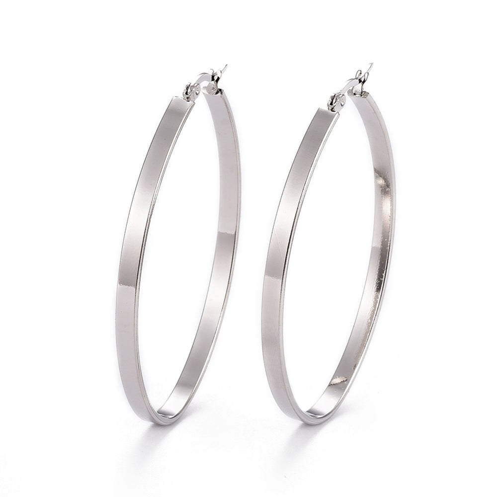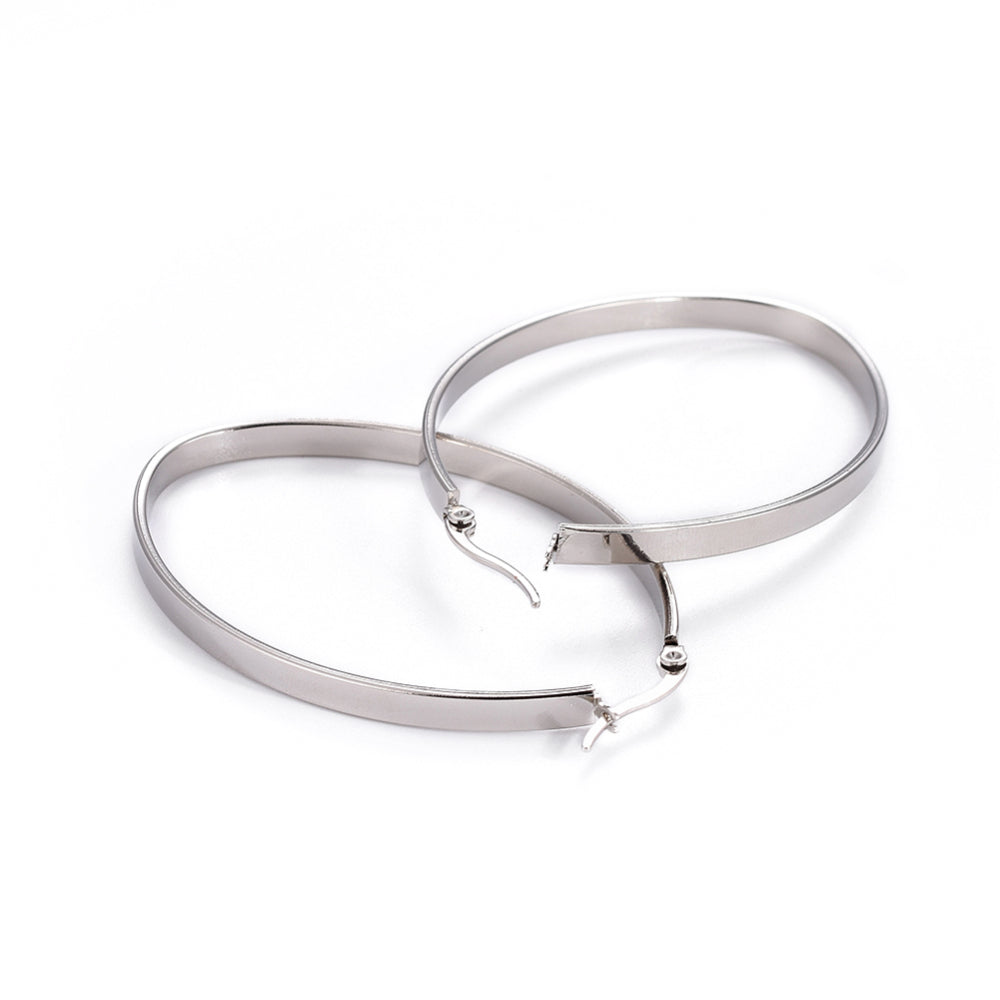 304 Stainless Steel Hoop Earrings, Hypoallergenic Earrings, Stainless Steel Color, 63x41.5x4mm, Pin: 0.7x1mm. (SS3CP)