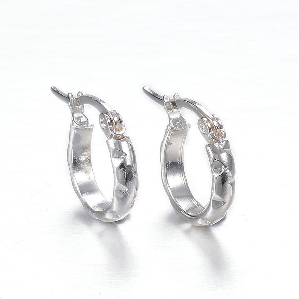 304 Stainless Steel Hoop Earrings, Textured, Silver Color Plated, 15x13x3mm, pin: 1x0.8mm. (F03416)