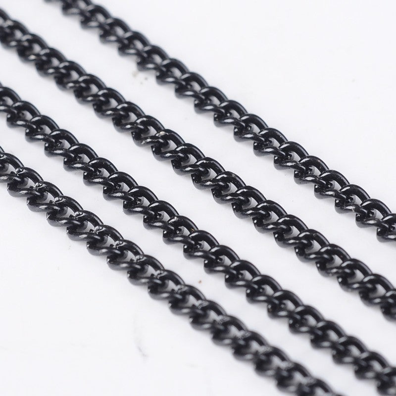 Iron Twisted Chains, Curb Chains, Electrophoresis Black, 3x2x0.6mm. Sold By the Foot