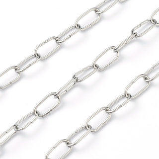 304 Stainless Steel Paperclip Chain, Stainless Steel Color, 12x6x1mm. Sold by the Foot