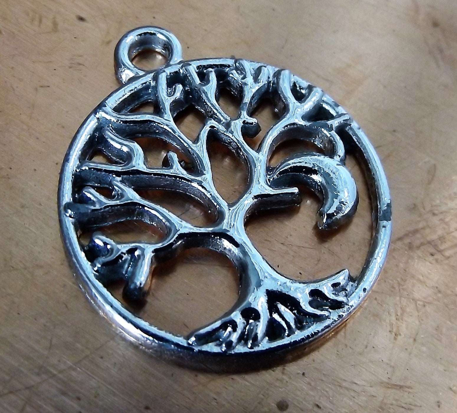 Charm/ Focal (Tree of Life with Moon Detail) 23.5 mm diam. Bright Silvertone