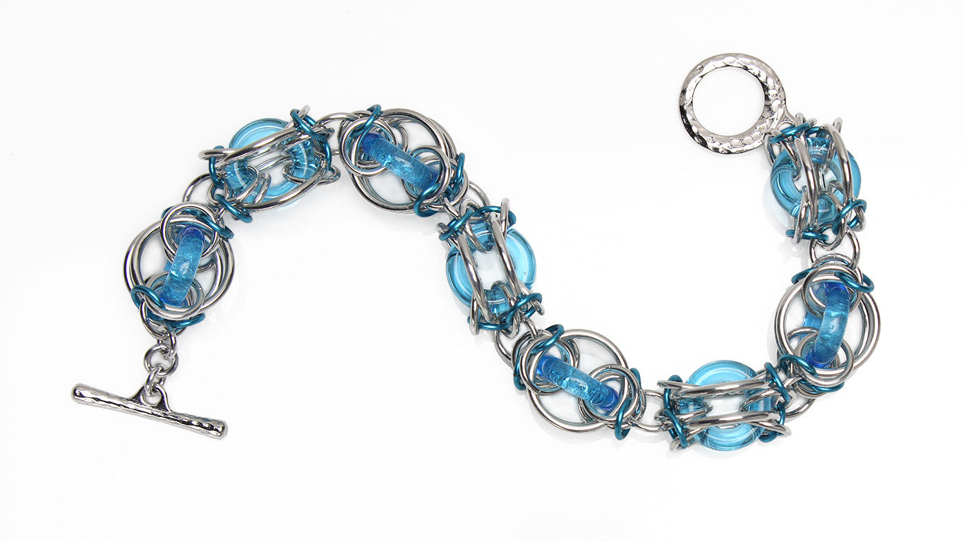 Component Kit for the Into Arctic Sphere Bracelet found in the New Connections Book.  Components only.  Instructions for the bracelet is found on page (85).  Looking for more supplies?  Check out the rest of our web store!  For example... More Glass Donuts found HERE
