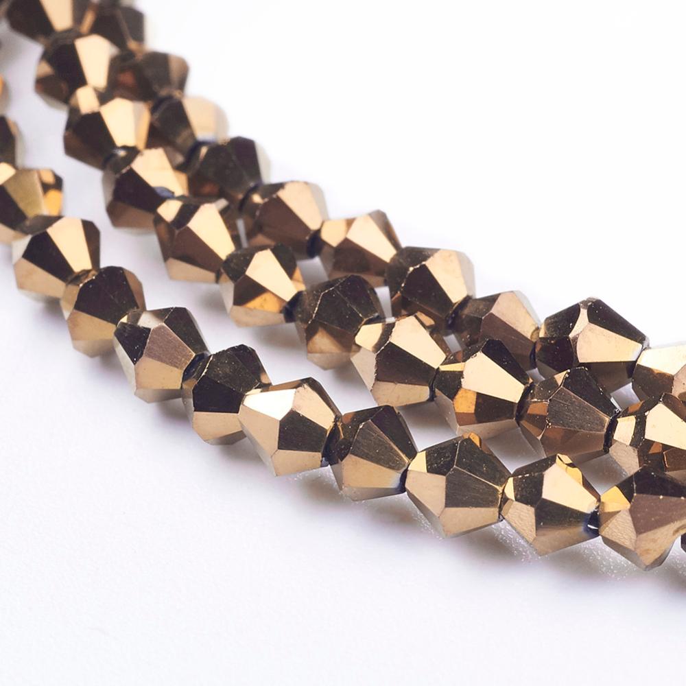 (3MM). Full Electroplate Bicone Glass Bead (Rich Copper) 17" Strands, Grade AA, 3x3mm, Hole: 1mm