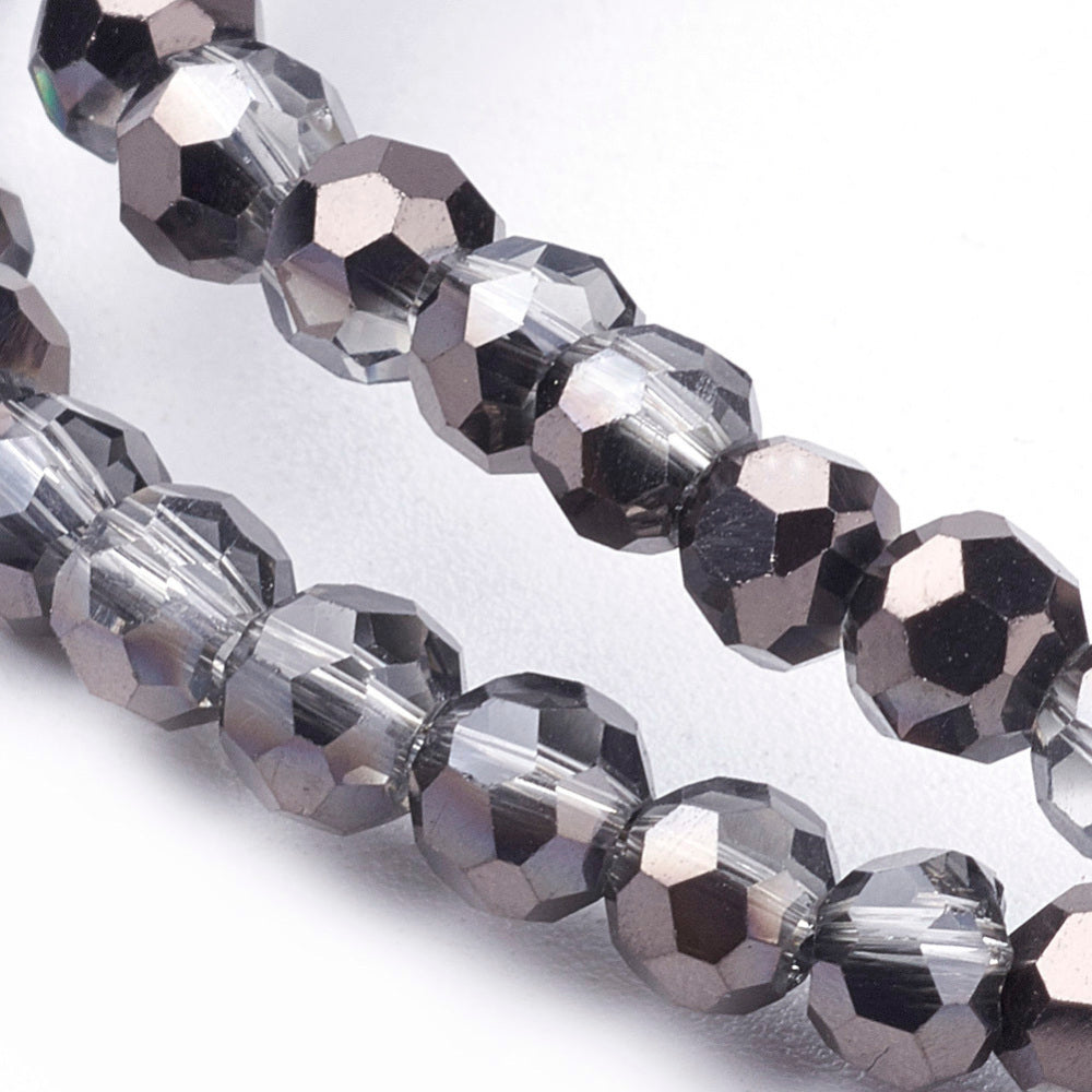 Glass Beads Half Electroplate on Black (4mm Faceted Rounds)