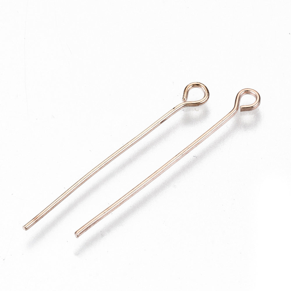 Eye Pin (Brass with Rose Gold Plate) * Bright Rose Gold Color 30.5 x0.7mm, Hole: 1.8 mm (packed 50)