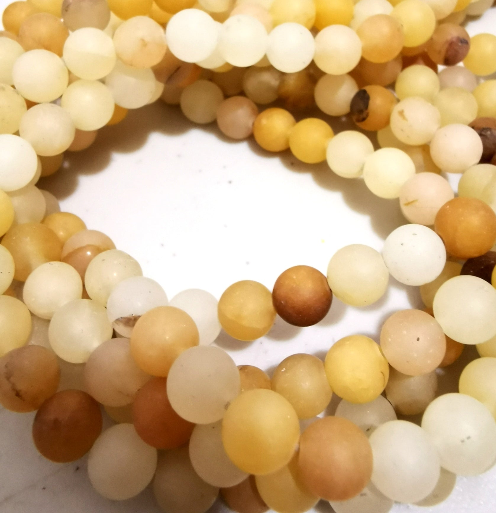 Jade (Creamy Frosted Butter Yellow) 8mm Round (approx 49 Beads)