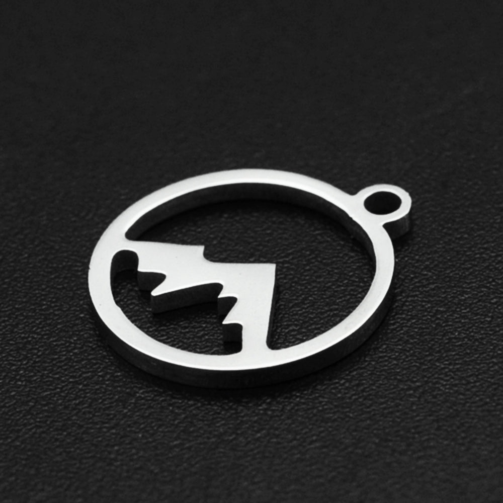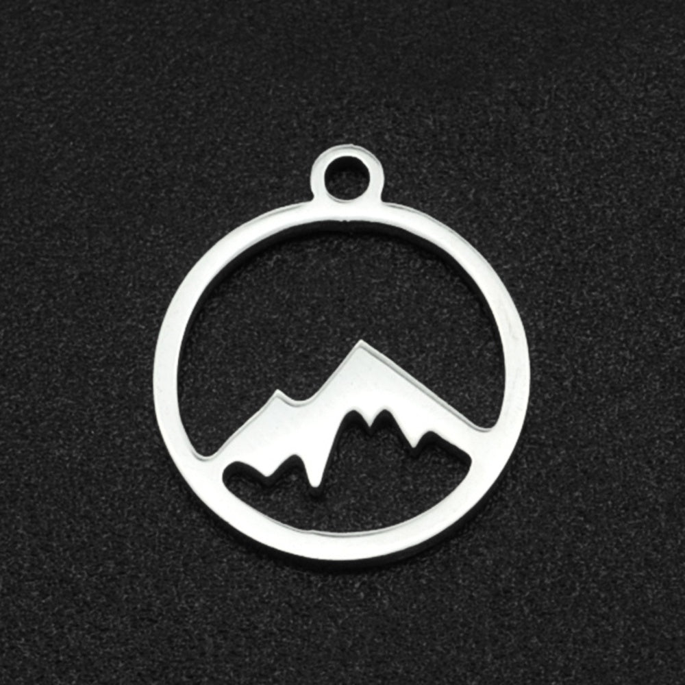 201 Stainless Steel Charms, Laser Cut, Hollow, Ring with Mountain, Stainless Steel Color, 14x12x1mm, Hole: 1.2mm. (Packed 2)