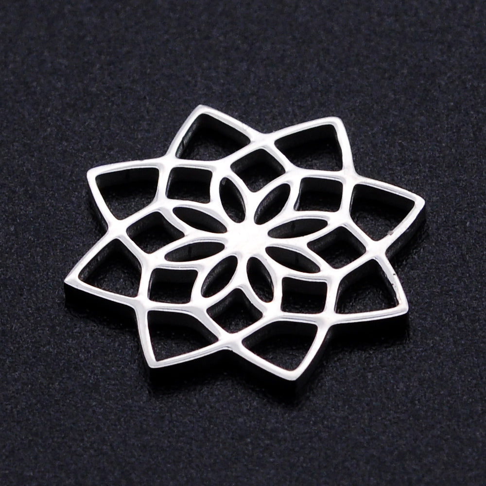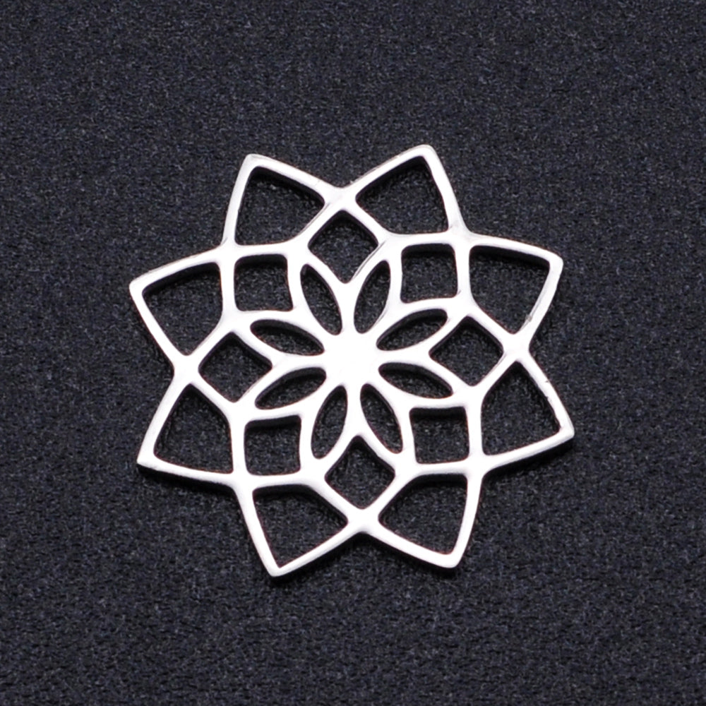201 Stainless Steel Filigree Joiners Links, Laser Cut, Flower, Stainless Steel Color, 15.5x15.5x1mm. (packed 2)