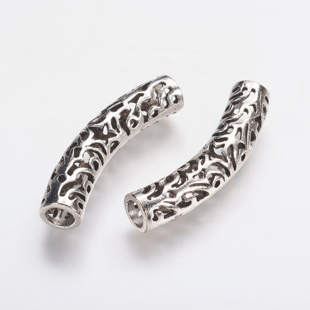 Tibetan Style Alloy European Beads, Hollow Tube, Antique Silver, 37.5x7.5mm, Hole: 5mm. (Packed 5 Tubes)