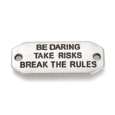 Tibetan Style Alloy Links/Connector, Rectangle with Words: "Be Daring. Take Risks. Break the Rules", Antique Silver, 34x14x2mm, Hole: 2.5