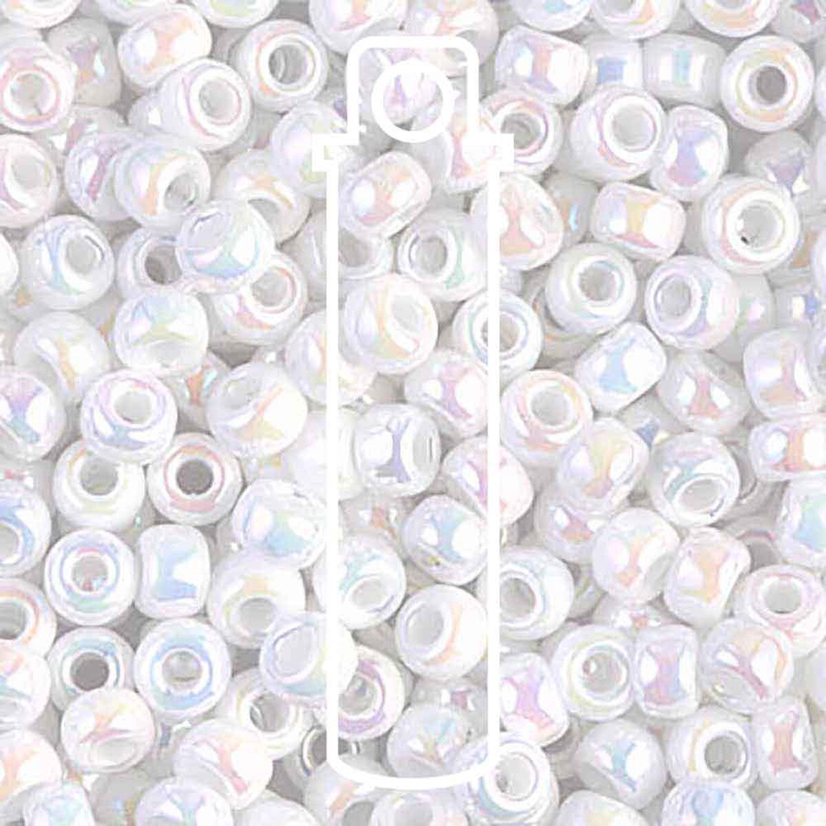 Seed Bead (MIYUKI 6/0) Round. (WHITE AB) 20gm tube.