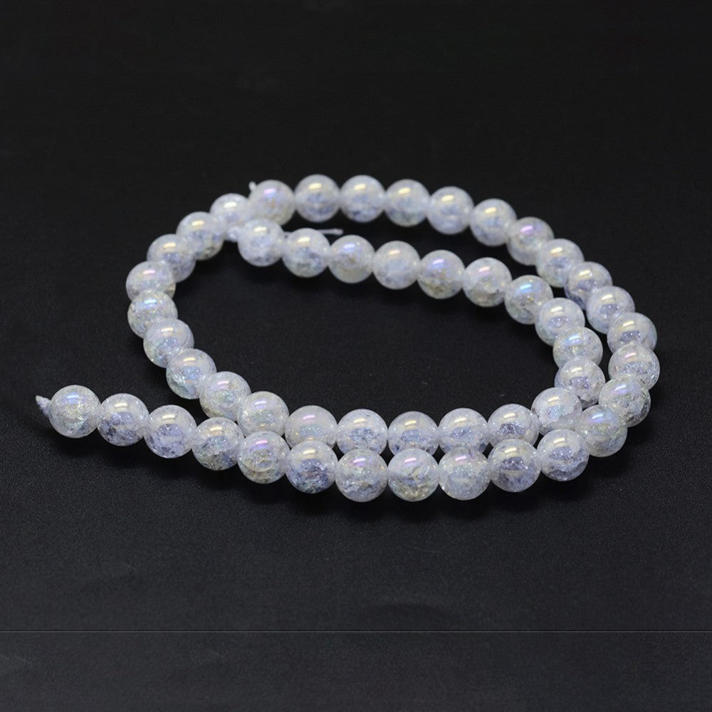 Electroplated AB Finish Crackle Quartz Crystal (See Drop Down For Size Options). 16" Strand