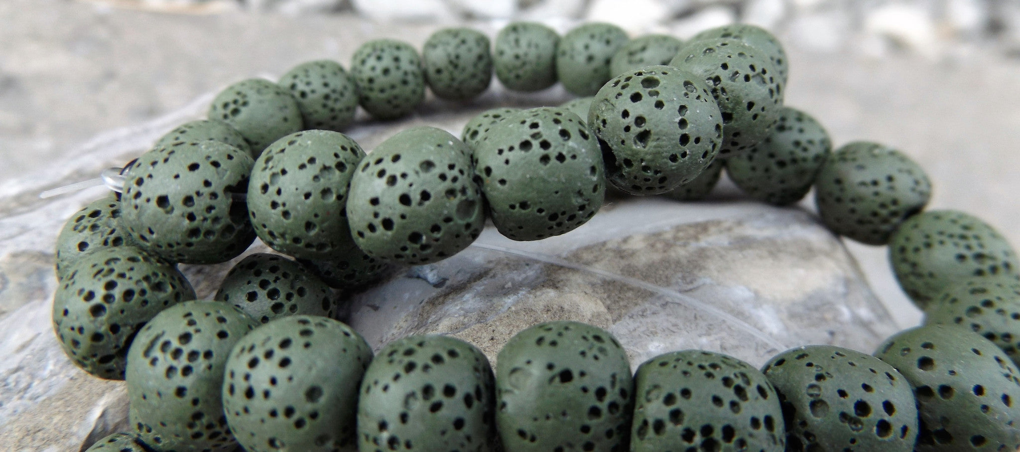 Lava (Rounds) *16 inch strand. 10mm Dark Green.