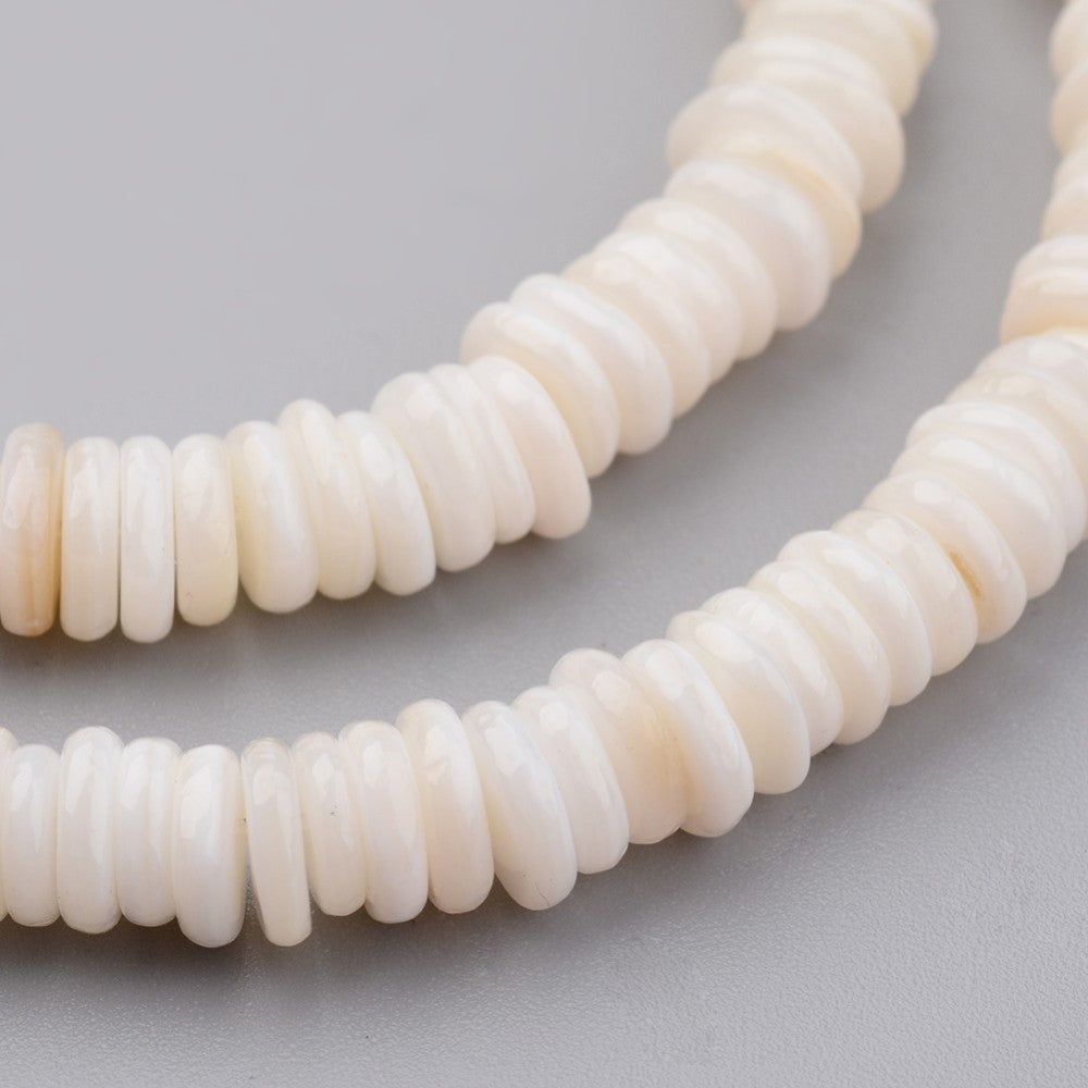 Natural Shell Bead Strands, Square Heishi Beads, Floral White, 7x7x2mm, Hole: 1mm; *Approx 200 Beads