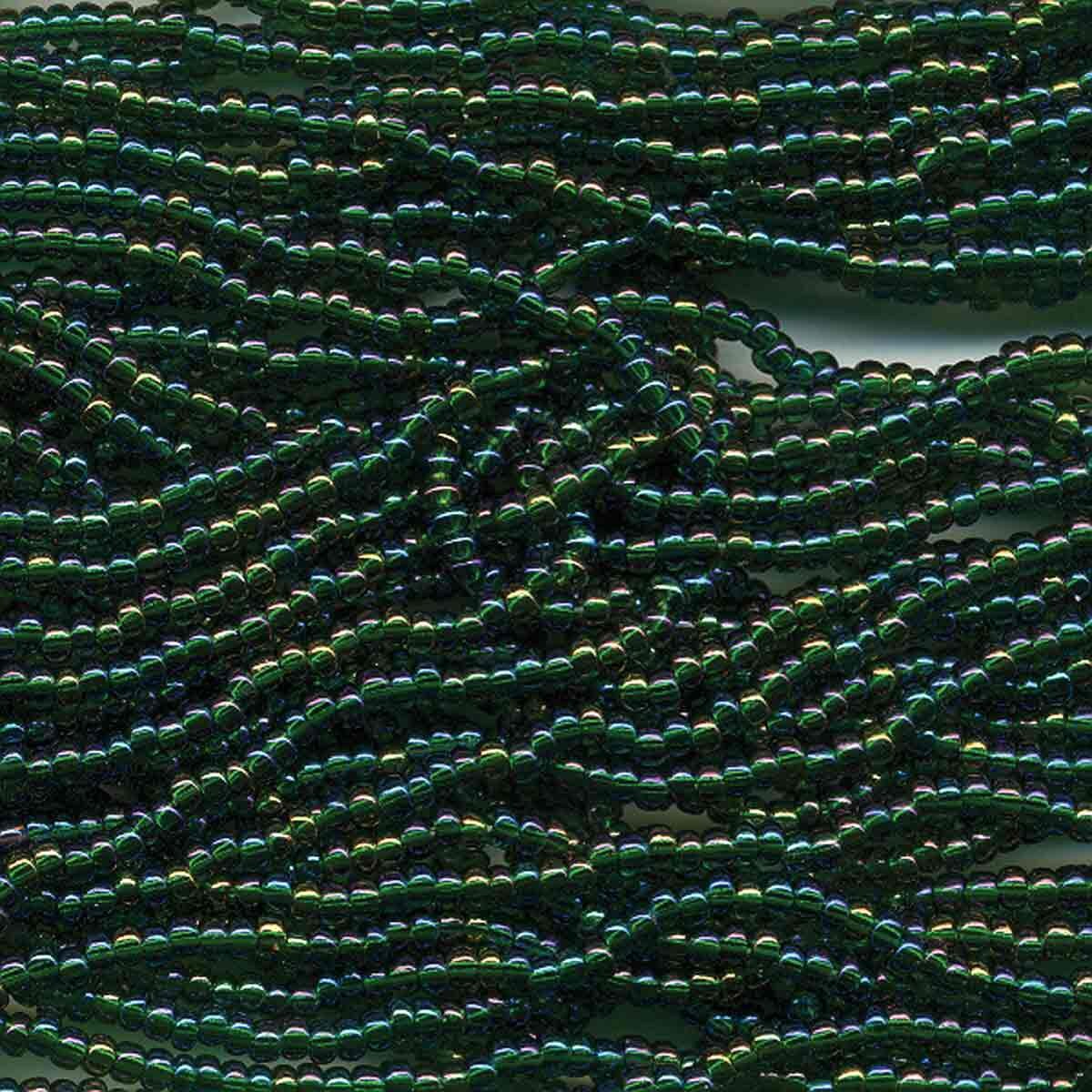 8/0 Czech (Green Transparent AB) 6 String/Hank *Approx 41 gr