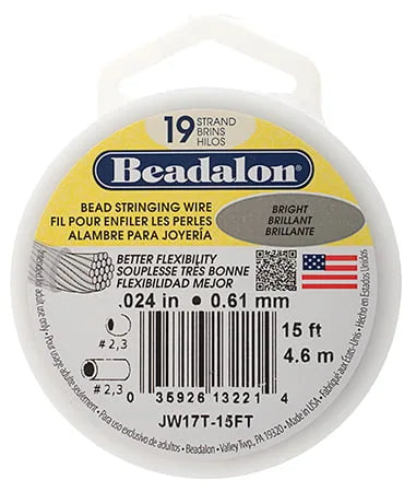 Beadalon (BEAD STRINGING WIRE) *19 Strand (15FT) (.024in/ 0.61mm). Bright Finish