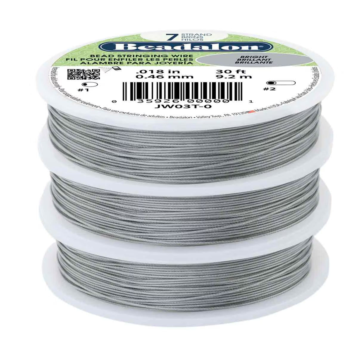 Beadalon (Bead Stringing Wire) Silver Color *7 Strand (.015 in 30 Feet. 0.38mm. 9.2m)