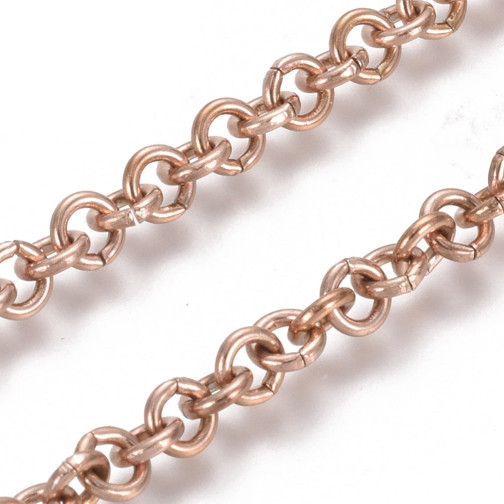 304 Stainless Steel Rolo Chains, Belcher Chain, Unwelded, Rose Gold, Links: 4x0.9mm *Sold by the Foot