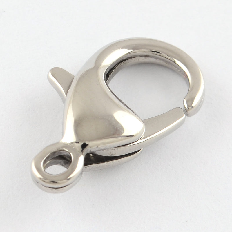 316 Surgical Stainless Steel Lobster Claw Clasps, Stainless Steel Color, 19x12x5mm, Hole: 3mm *(Packed 2)