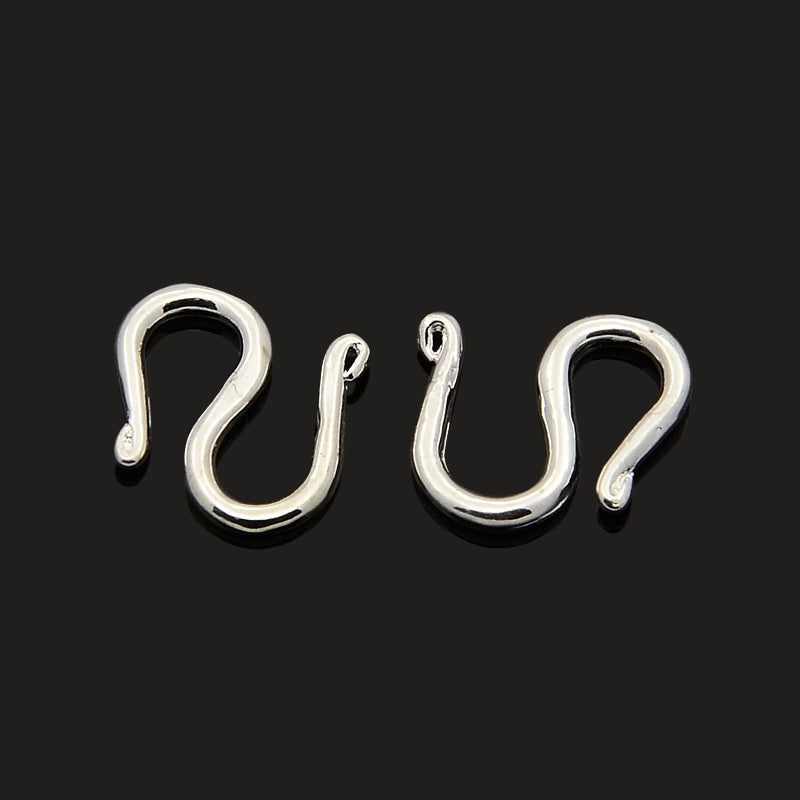 Brass S-Hook Clasps, Silver Color Plated, 11x11x1.5mm. (Packed 5 Clasps)