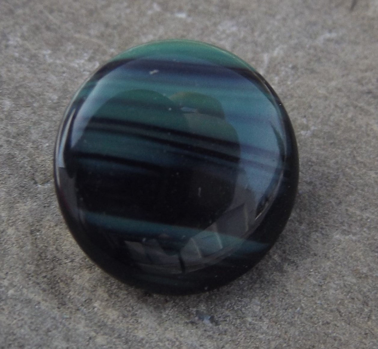 Button (Czech Glass) Green & Black Stripes. 13 mm Diam. (sold individually)