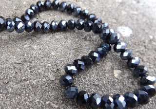 Glass Beads Strands, Faceted Abacus, (BLACK AB), 6x4mm, Hole: 1mm;