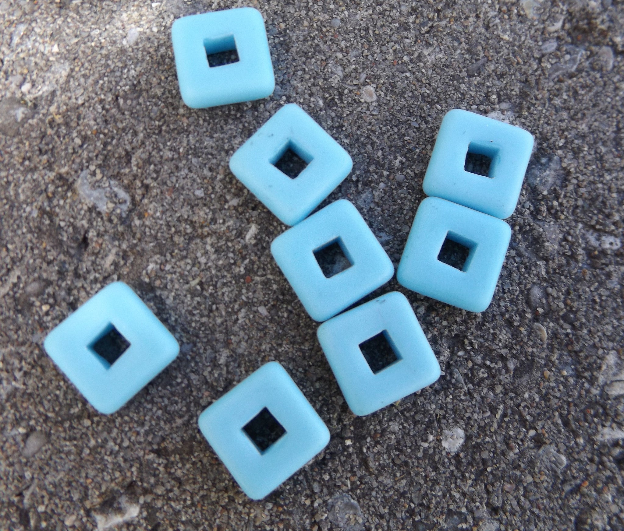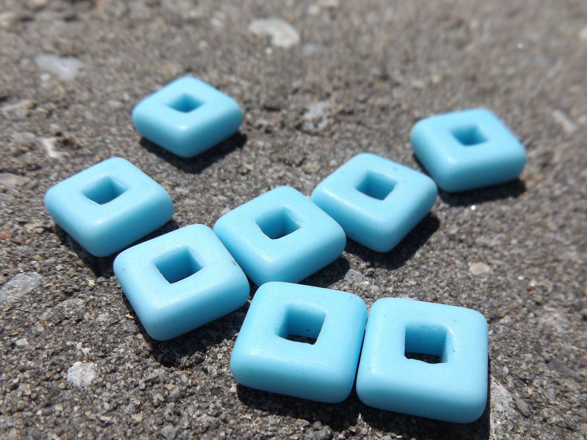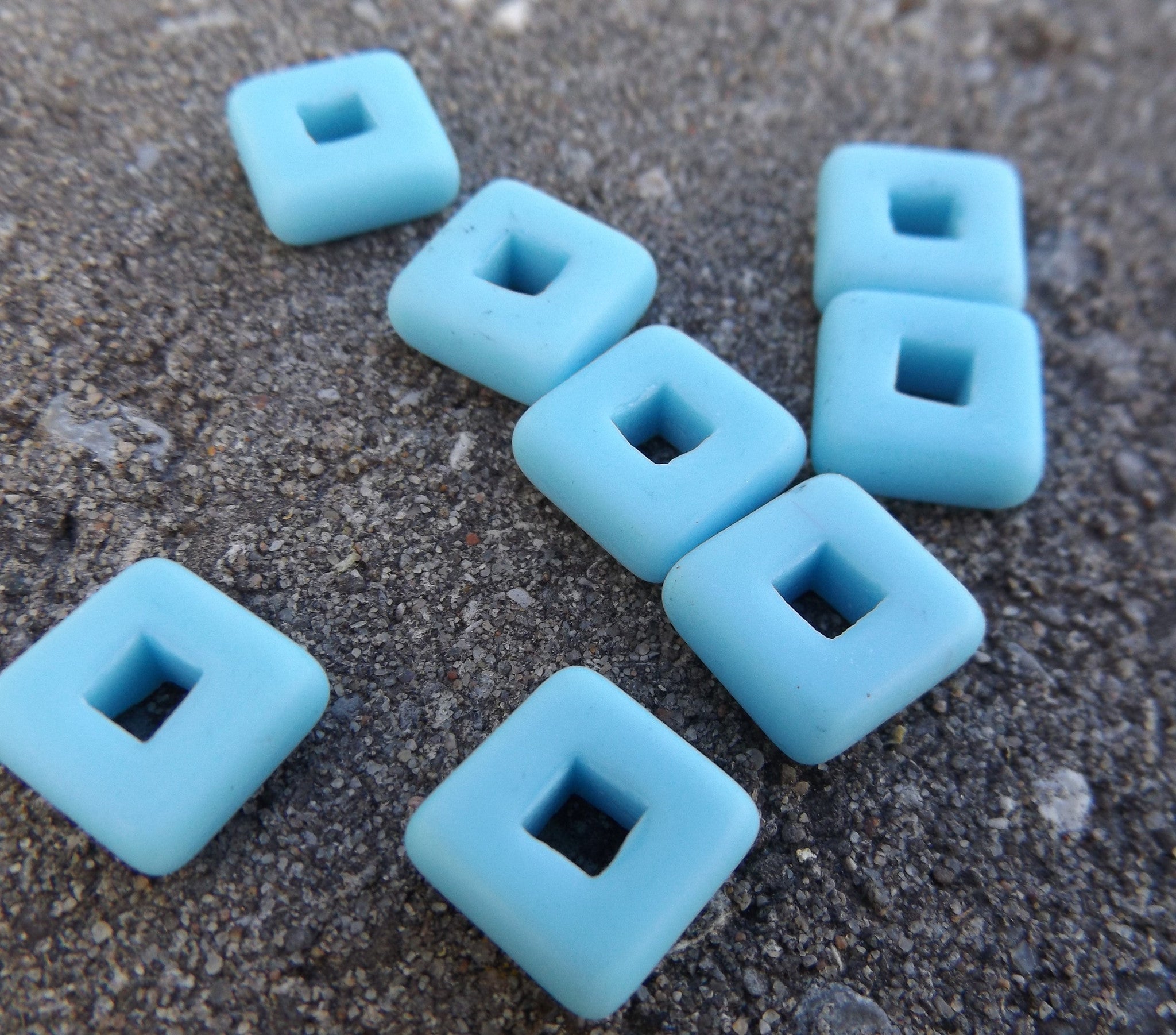Czech Glass Square Links (Opaque Pale Blue) 11x 11mm (hole 5mm) *Packed 8 or Bulk