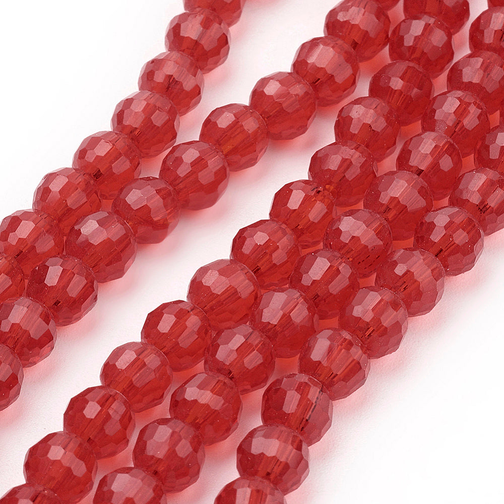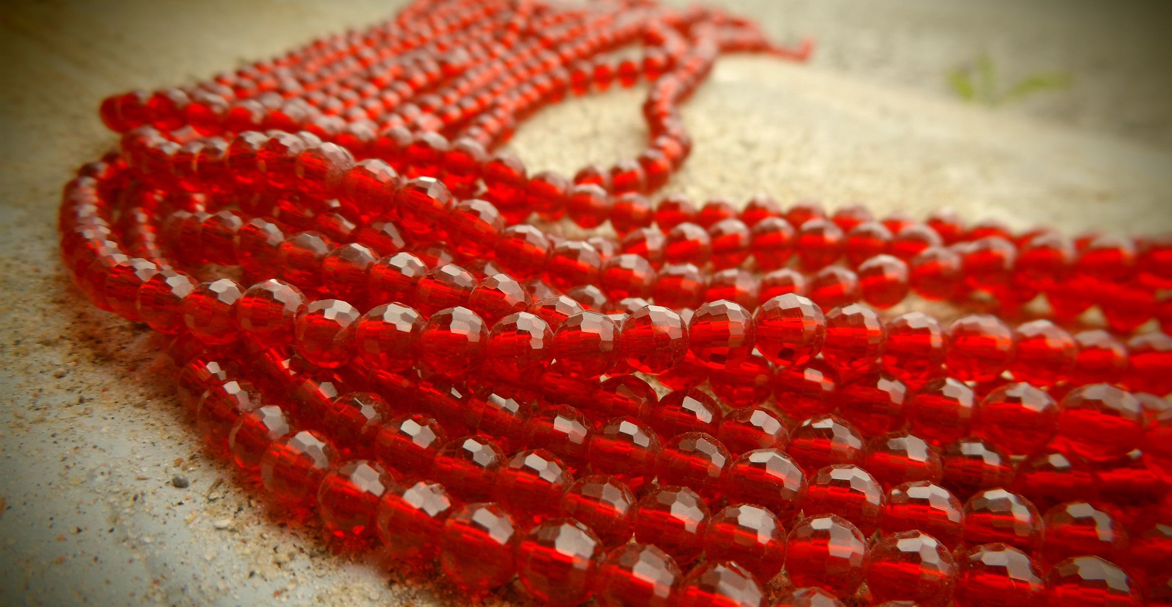 Glass Beads (Faceted 6mm) RED (approx 36 beads on 7.5" Strand)