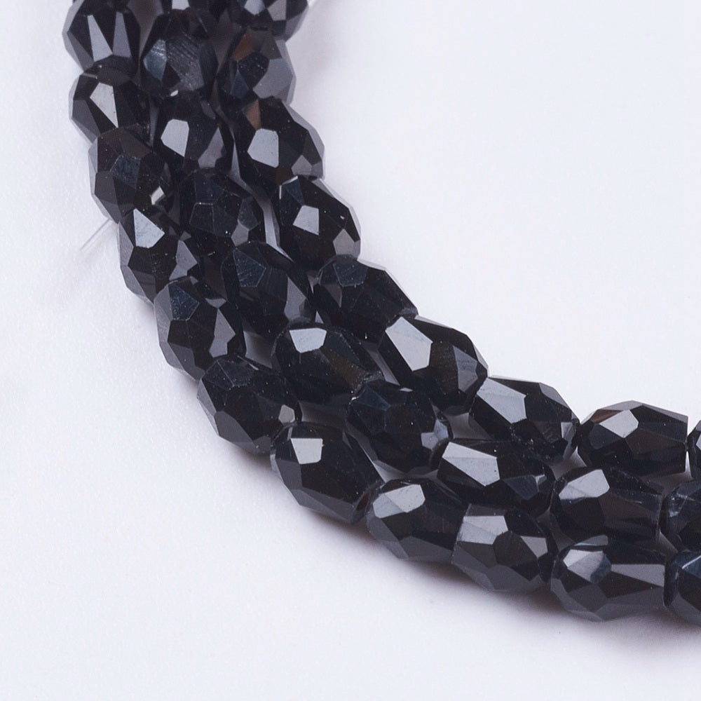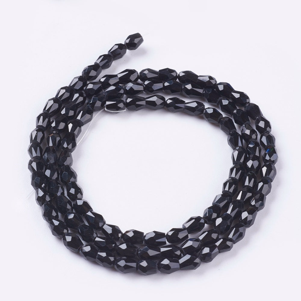 Glass Teardrop Beads, Faceted, Black, 5 x 3 mm, Hole: .5mm. Approx 90 Beads
