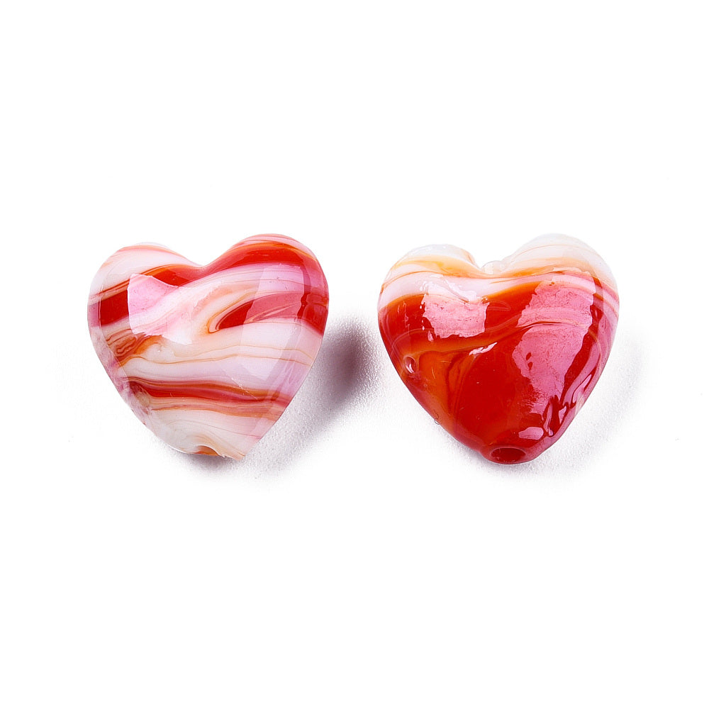 Handmade Lampwork Beads, Pearlized, Red, 16x16x8.5mm, Hole: 1.4mm. (10 Hearts)