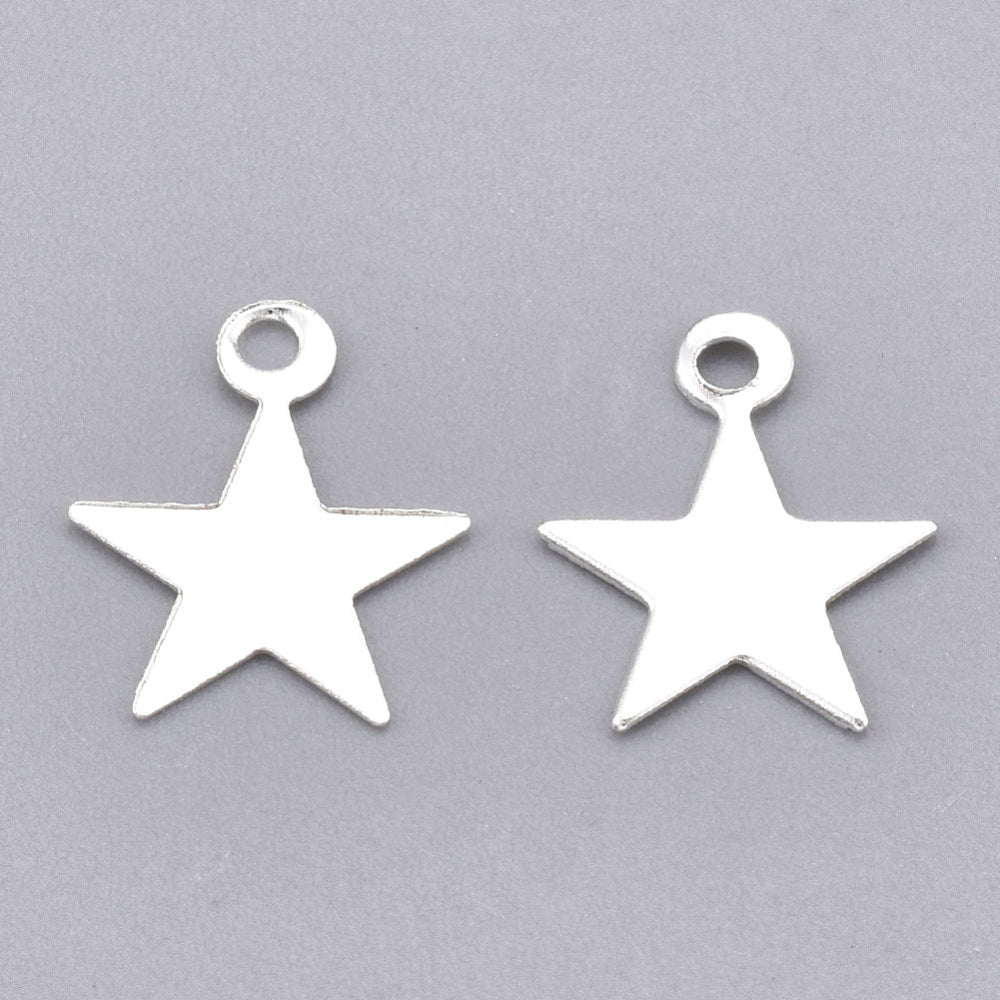 Iron Charm (Star), Silver Color Plated, 10x8x0.5mm, Hole: 1mm. *Packed 25 Stars